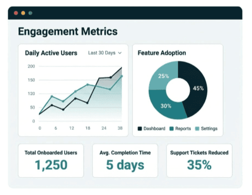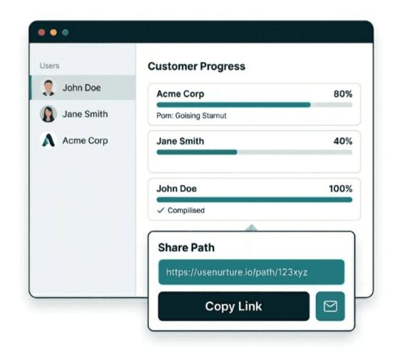 Every step a customer completes — or skips — tells you something. UserNurture tracks engagement across every Path and walkthrough, shows you where customers are getting stuck, and feeds that behavioral data directly into your CRM. You stop guessing and start knowing.